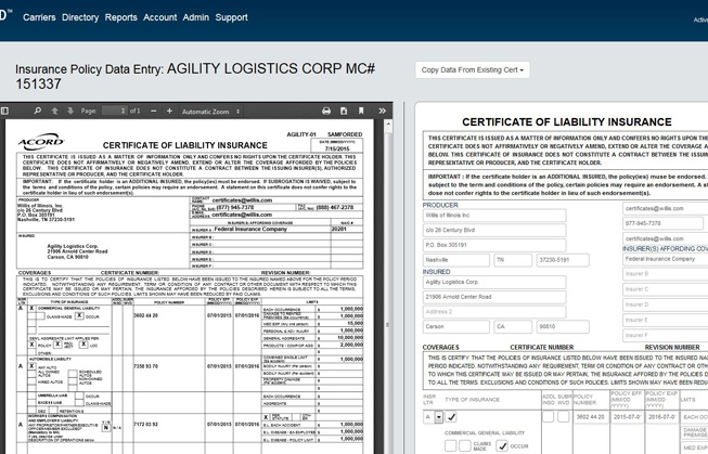 Shipper Shield has a sophisticated collection system for insurance certificates, allowing us to quickly process certs received by mail, fax, e-mail, direct submission to our web site, submission by clients and submission by carriers. As soon as a certificate is uploaded it becomes available for download.